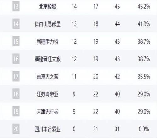 吉林东北虎以18胜13负紧随其后,仍保留理论希望,但需在剩余赛程中至少赢下4场以上。新疆广汇与福建浔兴仍存晋级可能,新疆本轮防守端有所复苏,若能延续,有望冲击前十;福建遭遇两连败,距离前十二差2个胜场,复苏窗口正在收窄。同曦男篮17胜14负,落后3个胜场,稳定性不足成为最大软肋。