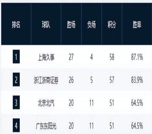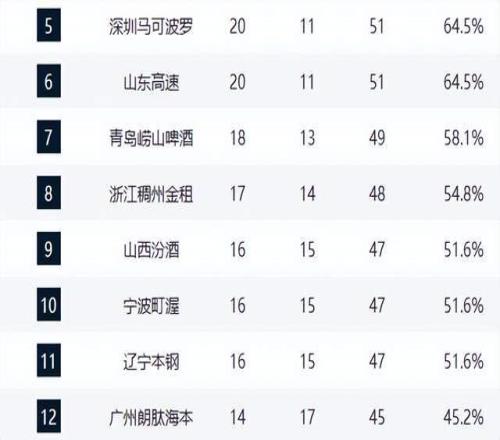 上海12连胜领跑,广东掉出前3,黑马6连胜追平京粤鲁,辽宁掉链子
