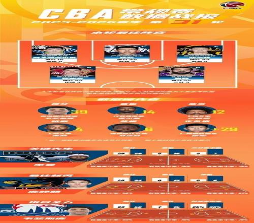 CBA官方公布常规赛第31轮最佳阵容,胡金秋23分率领广厦连续19年晋级季后赛,徐昕20+9统治内线率领广州爆冷大胜辽宁,阿不都沙拉木、程帅澎与里勒也入选最佳阵容。
