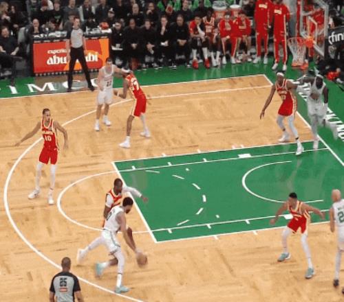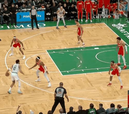 今天第四节凯尔特人最好的一球:沙伊曼和普里查德二人转突破,回传弧顶,塔图姆点给加扎突破上篮。四人摸球(怀特在底角牵制),两次突破打穿。今天全队四个人助攻4次以上,人人经手摸球。
