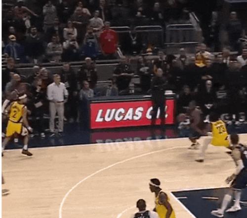 卢卡射中第38分后,微笑跟里夫斯打招呼;看特劳雷要点名勒布朗,自己主动换防,特劳雷混乱,卢卡断球,喂里夫斯反击三分:打停了网。