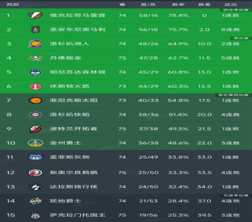 西部最新积分榜