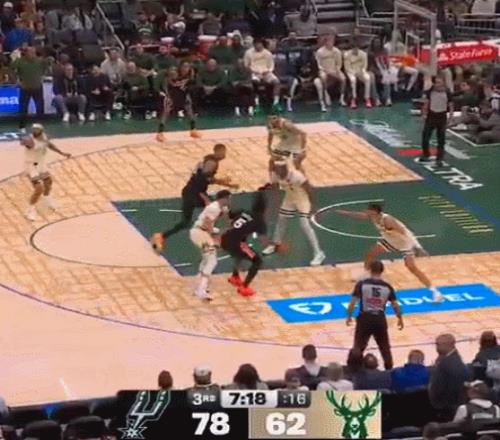 在当地时间周六马刺对阵密尔沃基雄鹿的比赛中,圣安东尼奥人以127比95的大比分疯狂碾压对手,轻松将球队的八连胜收入囊中。但整场比赛最让人血脉喷张的画面,出现在第三节中段。当时,斯特凡·卡斯尔带球杀入内线,在罚球线附近成功吸引了对手的双人包夹。随后,他将球高高抛向了自己身高7尺4寸的内线搭档。