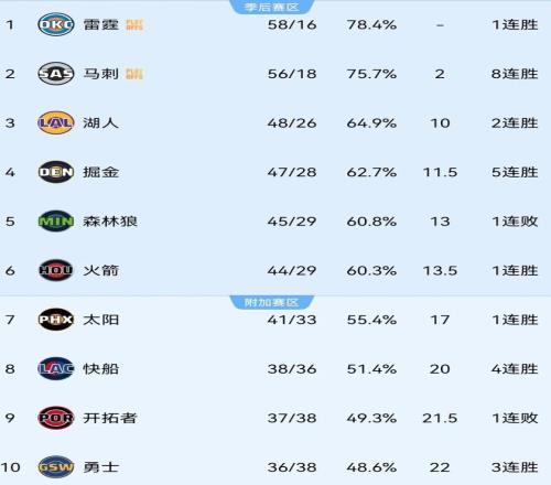 太阳当前战绩为41胜33负排名西部第七,落后第六的火箭3.5个胜场,还剩八场常规赛要打,对手分别是灰熊、魔术、黄蜂、公牛、火箭、独行侠、湖人和雷霆,直通季后赛难度已经变得极大,但很有希望通过附加赛杀进季后赛。