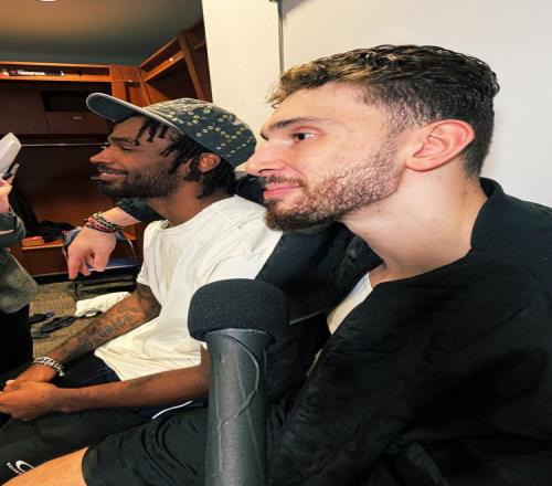 火箭美女记者Vanessa Richardson晒出申京和伊森赛后接受采访时搂着肩膀的合照,配文写道:“氛围,化学反应,肢体语言。”