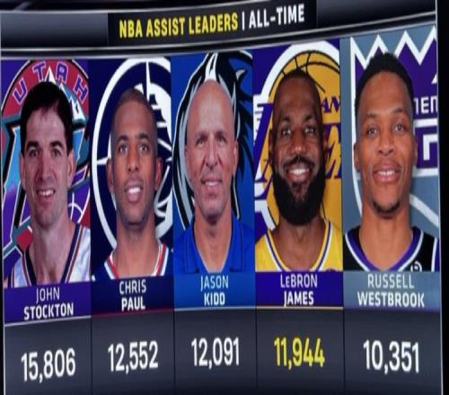 若要在本赛季超越基德,詹姆斯需打满剩余8场且场均17.4次助攻