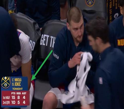 第三节,掘金核心约基奇攻防两端全面发挥,单节砍下10分5篮板4助攻,帮助球队单节净胜19分。