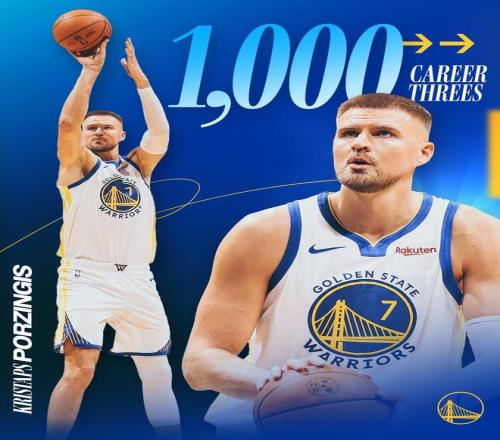 此役,波神还创下了纪录。波尔津吉斯首节命中2记3分球,其生涯已投进共计1000记三分,就此创下纪录。