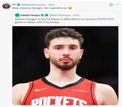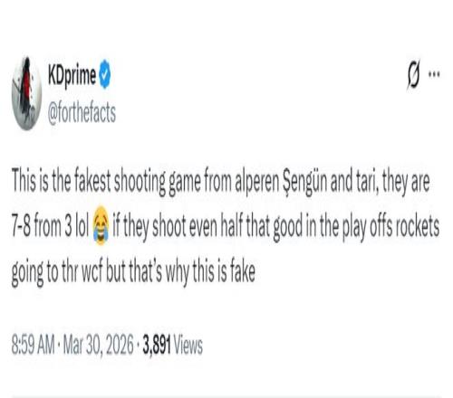 KD的球迷:这就是申京与伊森最虚假的投篮游戏,他们居然命中了7-8个三分球太假了。哈哈哈,如果他们能在季后赛有这样一半的三分投射水平,火箭可能能赢得总冠军,正因如此这场比赛才太虚假了。