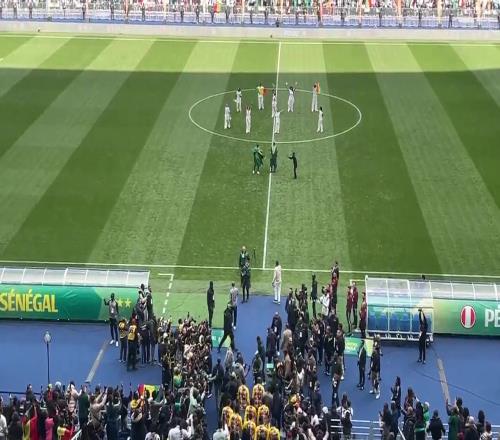 体育播报03月28日宣 北京时间今日0点,塞内加尔vs秘鲁,尽管被非洲足联剥夺冠军,但赛前塞内加尔还是在法兰西体育场展示非洲杯冠军奖杯。