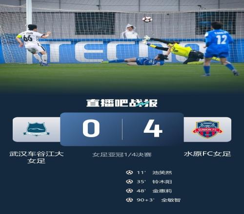 体育播报3月29日宣 女足亚冠联赛1/4决赛,卫冕冠军武汉车谷江大女足主场0-4不敌韩国水原FC女足,惨遭淘汰。