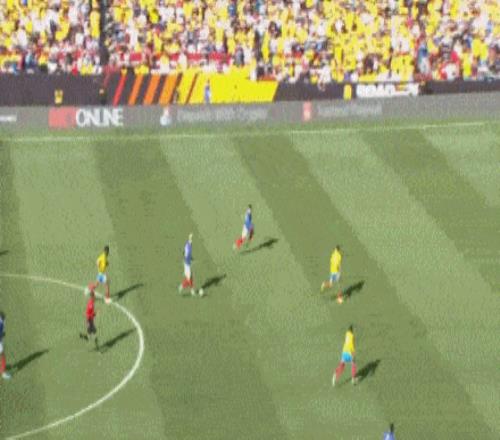 第84分钟,埃基蒂克再次收获良机,卡马文加的直塞,让他形成单刀,结果埃基蒂克竟然带得太多,直接被哥伦比亚门将破坏。